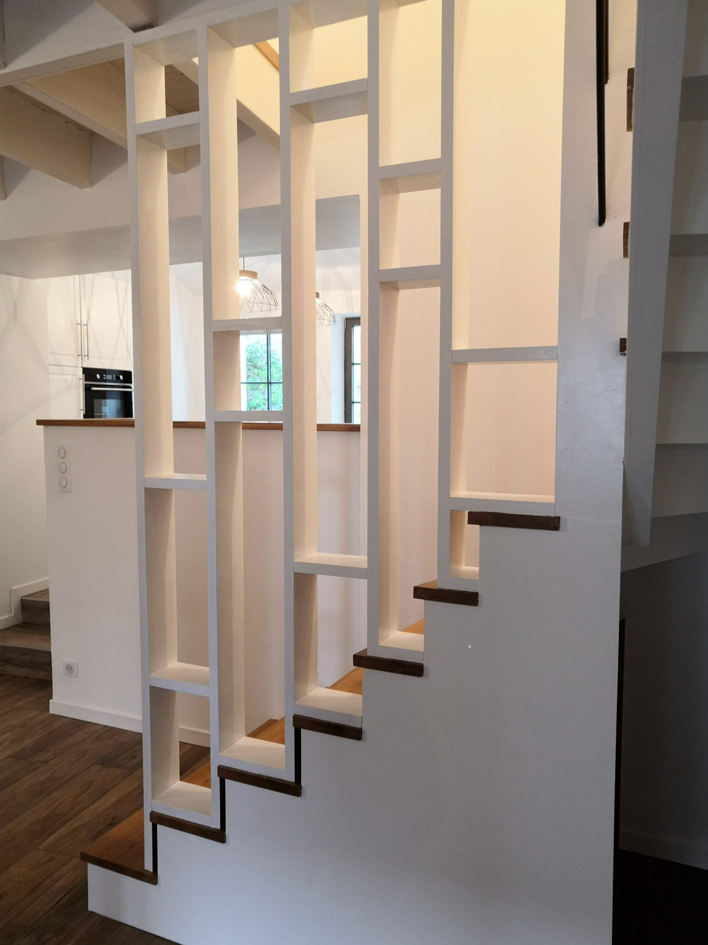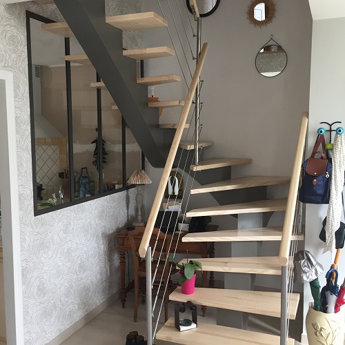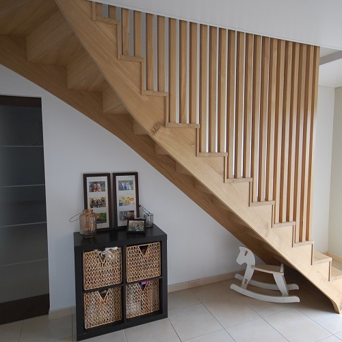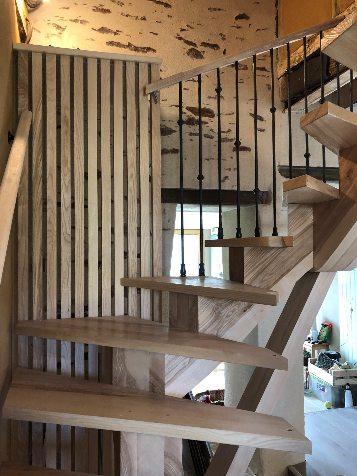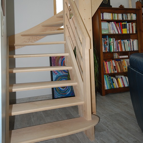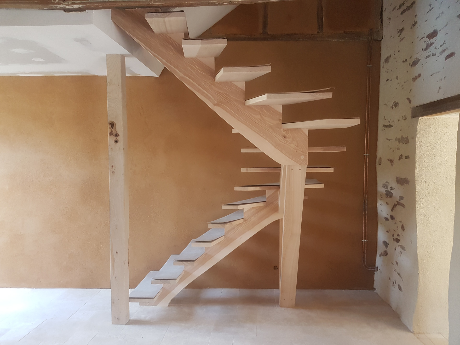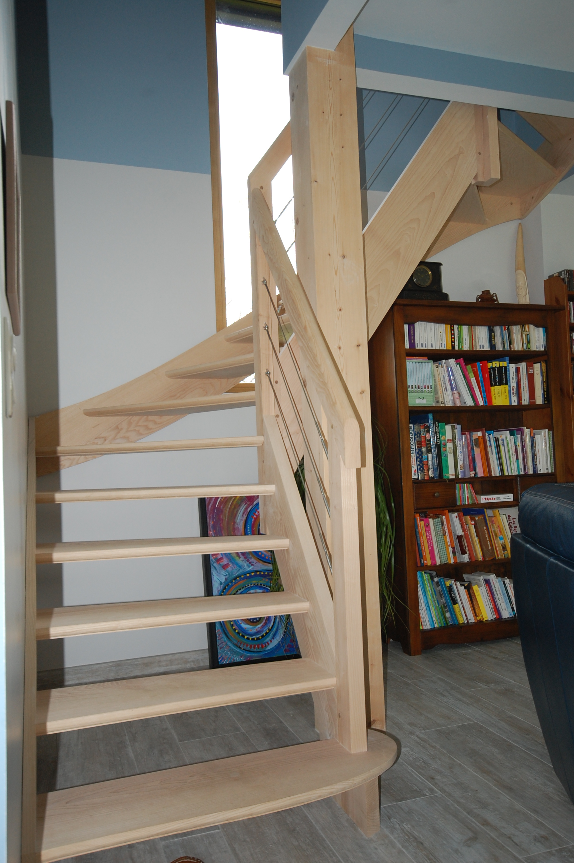 - Fort d’un savoir faire artisanal, nous fabriquons dans nos ateliers des escaliers en bois. Ils peuvent être droits ou balancés, avec ou sans contremarches, avec limon à la française, limon à l’anglaise, limon central.